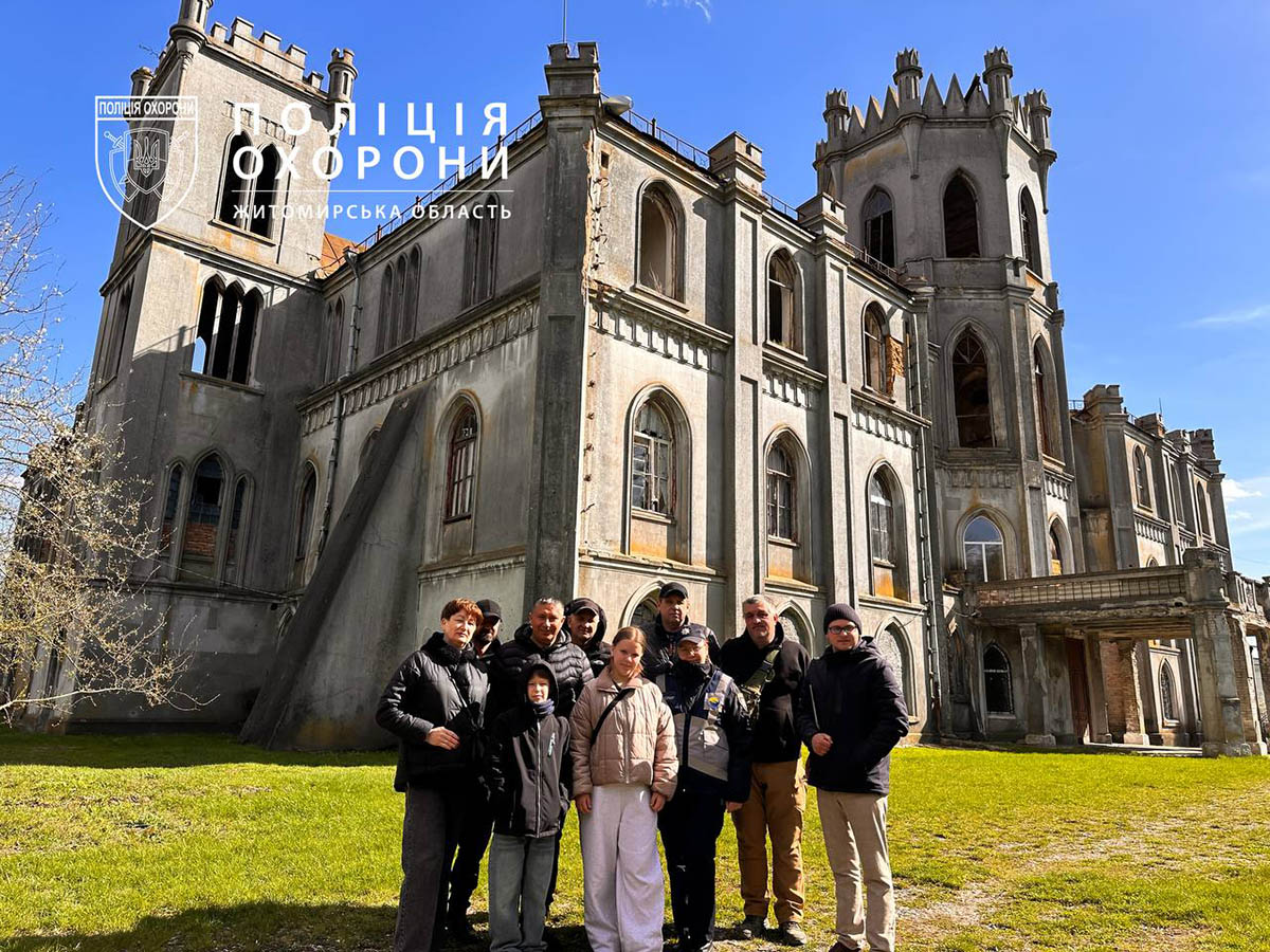 Поїздка відбулася до селища Червоне, де учасники відвідали унікальну архітектурну пам’ятку — палац Грохольських-Терещенків, відомий також як палац Терещенків. Це історичний маєток у неоготичному стилі, який є однією з найцікавіших туристичних локацій Житомирщини.