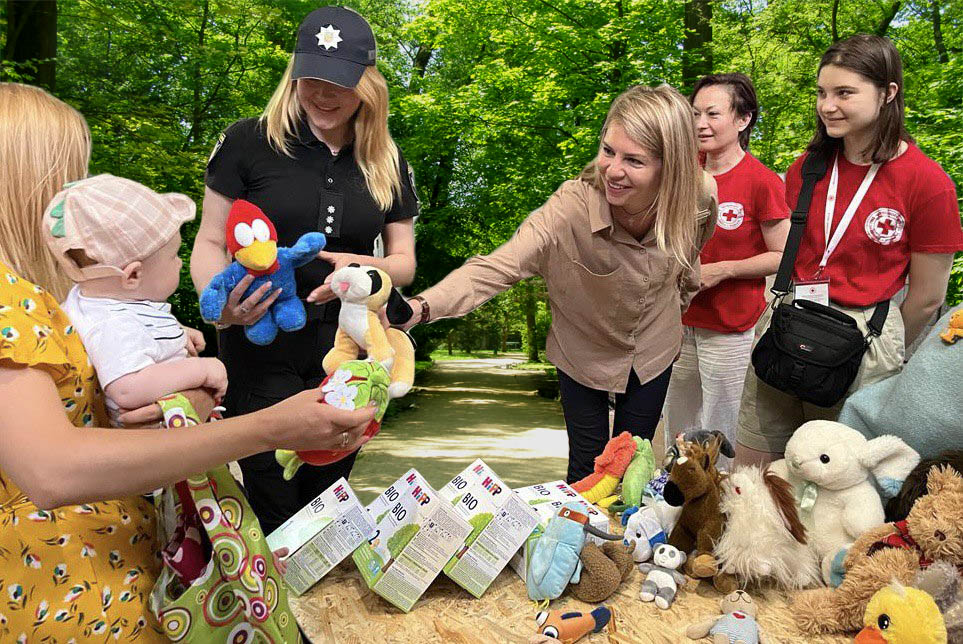 Сьогодні громадська організація «Розвиток Молоді Київщини» та Печерська районна організація Товариства Червоний Хрест України спільно з Поліцією охорони провели в Києві акцію з роздачі дитячого харчування, засобів гігієни, іграшок та продуктів для дітей, які потребують допомоги й піклування віком від 5 місяців до 7 років.