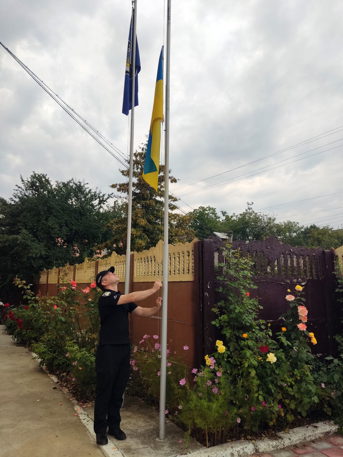 Поліцейські охорони приспустили прапор України та вшанували пам'ять загиблих хвилиною мовчання.