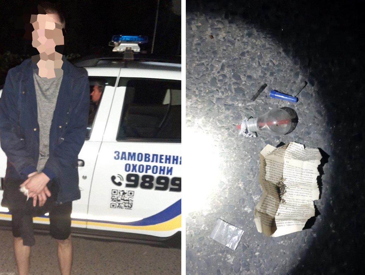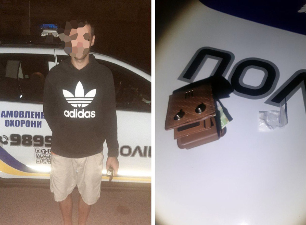 Вже через годину, на цьому ж маршруті патрулювання було помічено громадянина, який побачивши патрульну машину змінив напрямок руху і почав тікати. Наздогнавши чоловіка та провівши превентивні заходи, у молодика було виявлено згорток з речовиною сіро-зеленого кольору, рослинного походження, схожу на наркотичну.