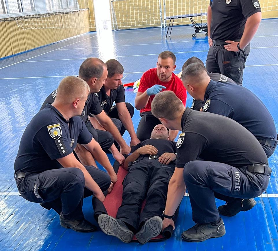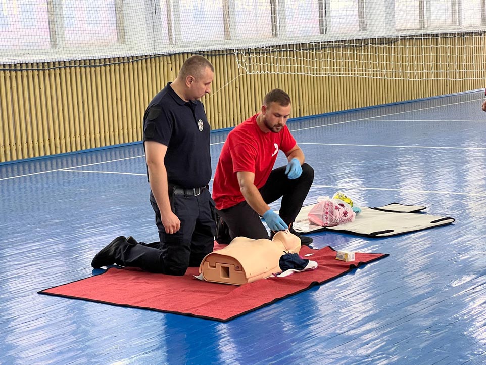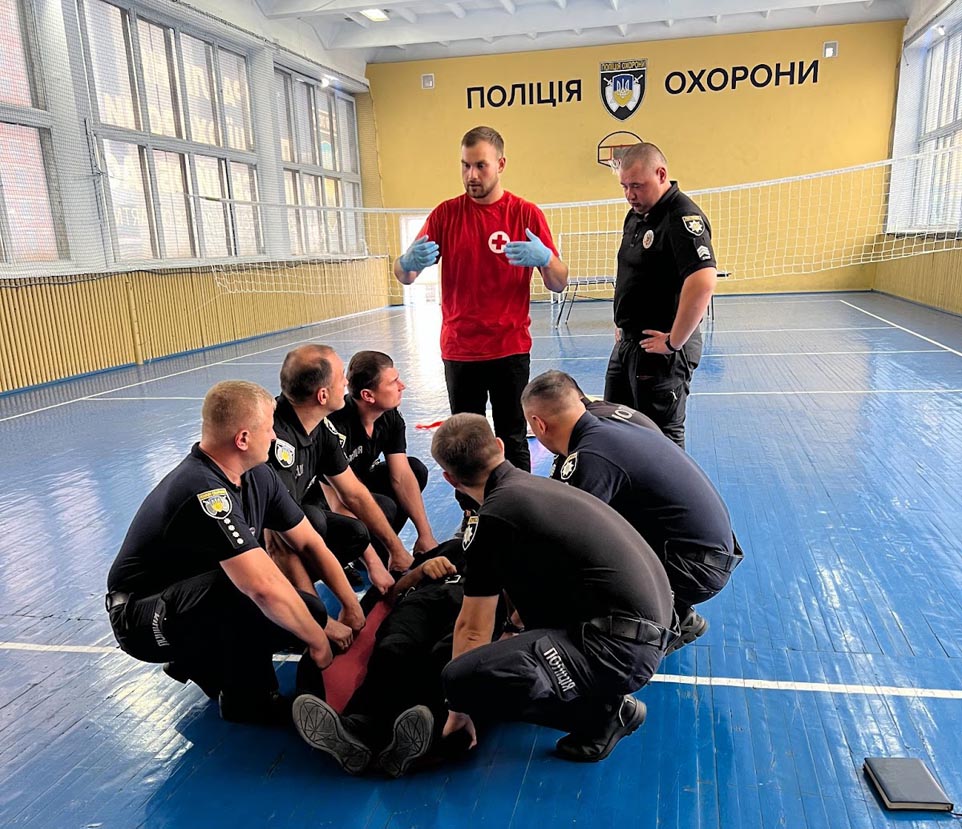 Працівники поліції охорони освоїли принципи надання домедичної допомоги такі, як: проведення огляду постраждалого; здійснення серцево-легеневої реанімації, зупинки різних видів кровотеч та інше. Працівники Червоного Хреста будували навчальні блоки так, щоб практики було більше, ніж теорії.