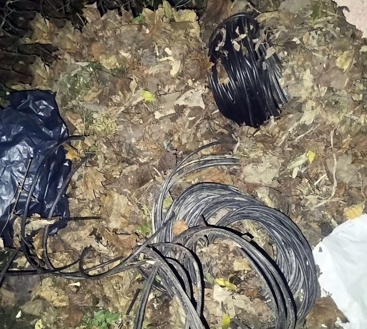 У затриманих правоохоронці вилучили портфель із приблизно п’ятьма метрами змотаного кабелю. На прилеглій території інспектори також знайшли ще два мотки кабелю, приховані під листям.