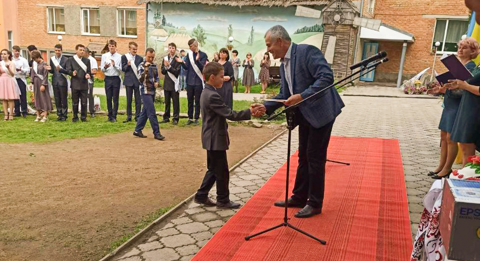– Ми вже багато років з вами товаришуємо і кожна зустріч наповнена радістю. Сьогодні важливий день, адже хтось залишає цей навчальний заклад і вирушає у велике плавання, обираючи ВУЗ до душі, подумки уявляючи себе в омріяній професії. Але ще присутні менші учні, які не менш щасливі, адже прийшли канікули. Ми щиро вітаємо вас із цим святом і даруємо вашому навчальному закладу принтер, який знадобиться для навчального процесу. Зичимо всім вам міцного здоров’я, незабутніх і гарних спогадів, сил і натхнення на добрі справи. Хай ваша майбутня професія принесе вам гарні здобутки і завжди пам’ятайте тих, хто подарував вам знання – ваших педагогів, адже вони, навчаючи вас, віддали  частинку себе, – привітав дітей та педагогів начальник відділення кадрового забезпечення Управління поліції охорони Олег Сурков.