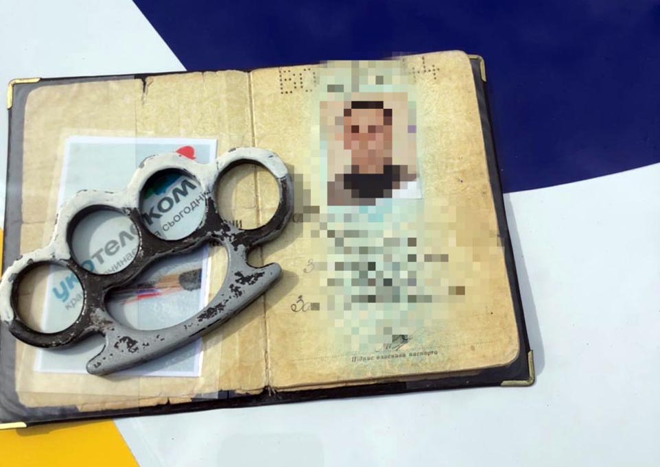 Під час перевірки та особистого огляду у 46-річного затриманого, поліцейські виявили предмет схожий на кастет. Зброю вилучено, а на місце події викликали слідчо-оперативну групу.