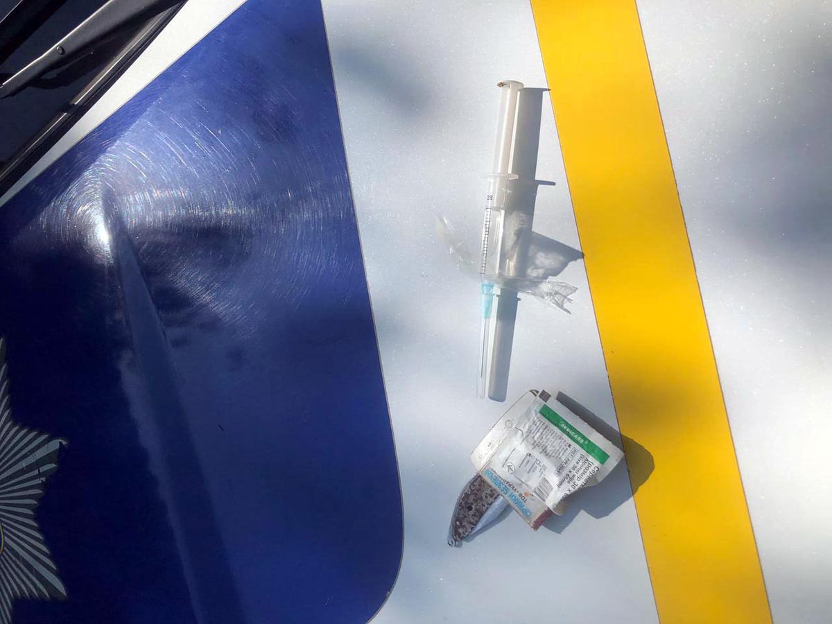 Під час перевірки документів та поверхневого огляду громадянина правоохоронці виявили шприц з рідиною, схожою на наркотичну.