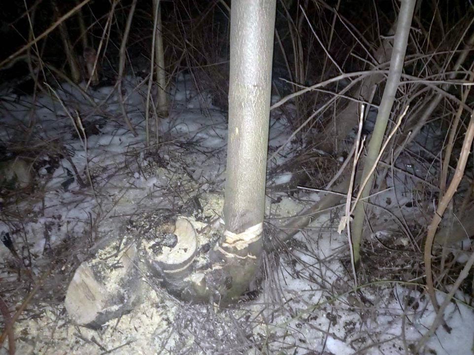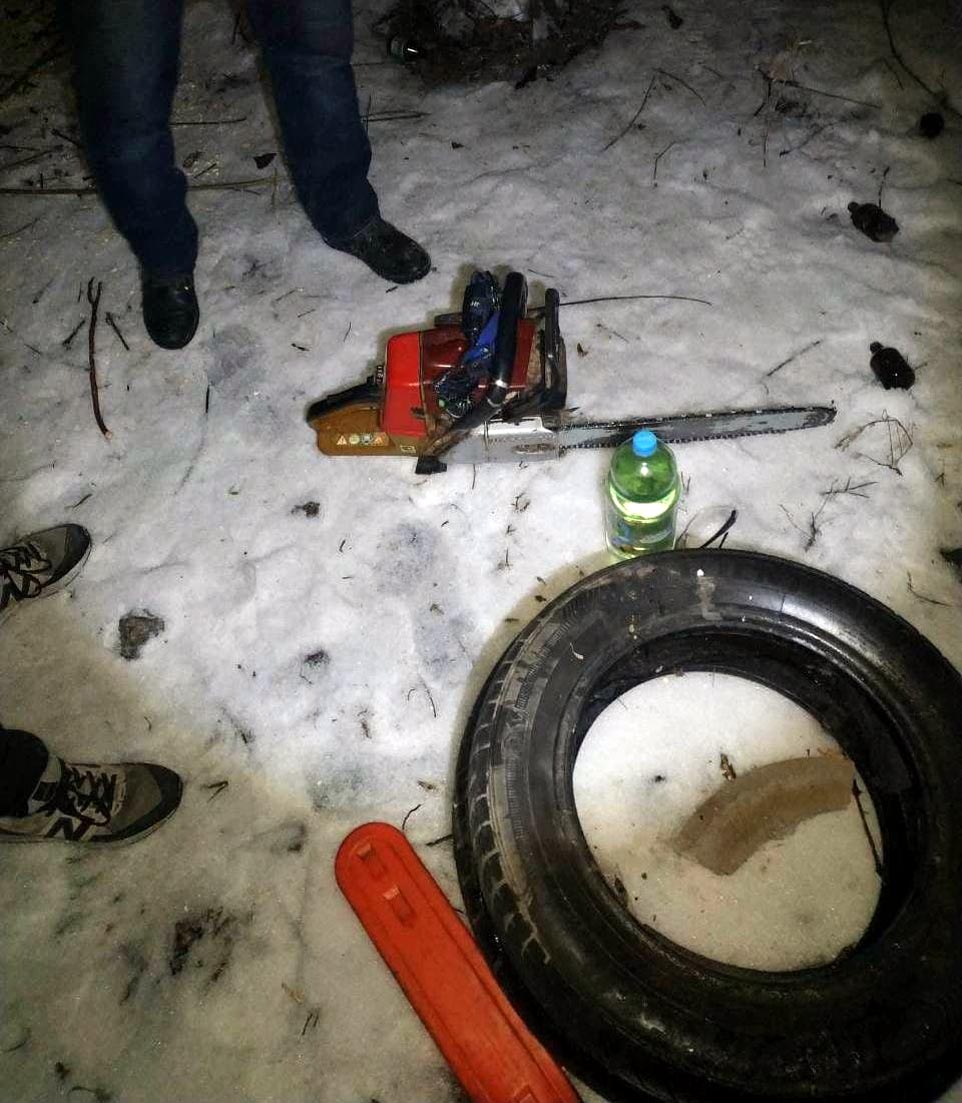Правоохоронці прибули на місце і побачили, як двоє чоловіків, за допомогою бензопили, спилюють дерева. Побачивши поліцейських, один із чоловіків кинув бензопилу і кинувся навтьоки. Його наздогнали та затримали. Жодних дозвільних документів на спил дерев у громадян не було.