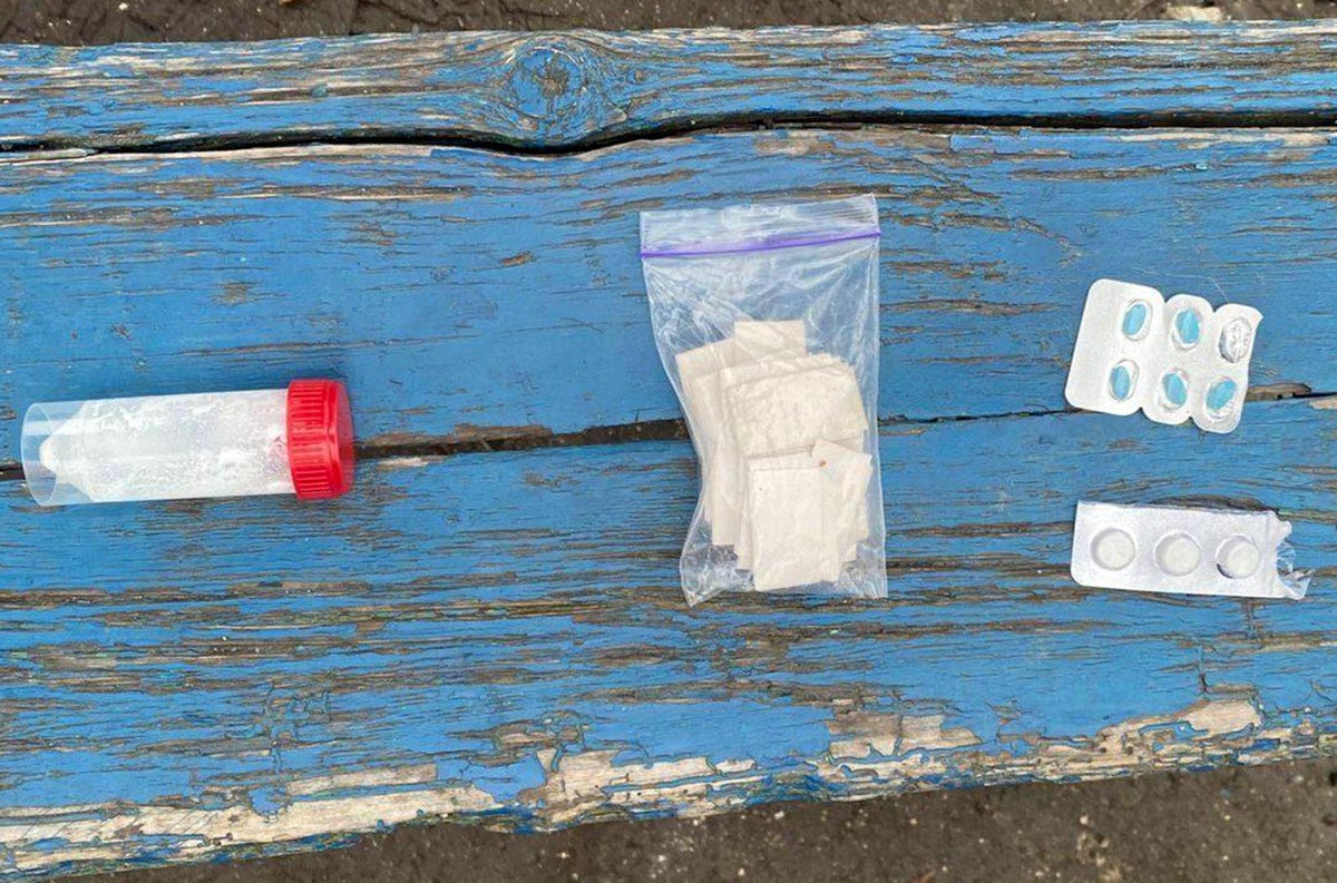Правоохоронці оперативно затримали громадянина. Під час поверхневого огляду у нього було виявлено декілька видів пігулок, порошок невідомого походження та зіп- пакет з невідомою речовиною.