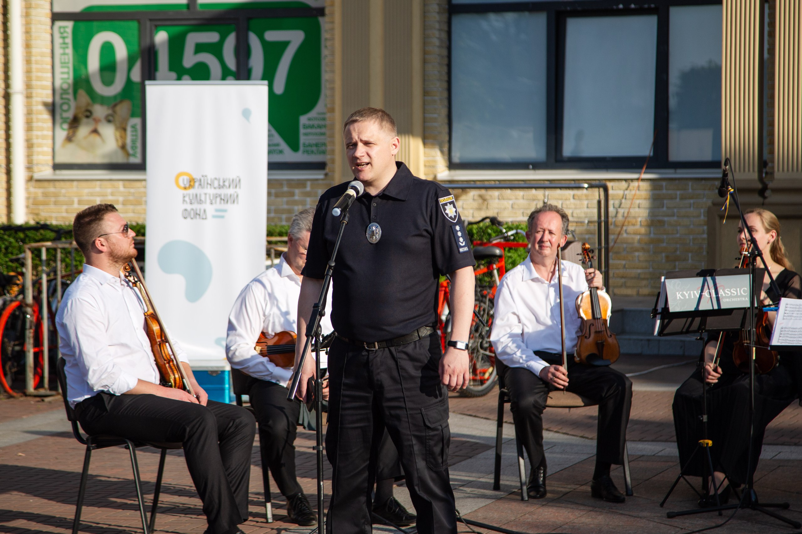 Влаштовуючи перший сеанс музикотерапії, організатори заходу воліли вшанувати всіх тих, хто захищав і захищає нас під час російської агресії. У тому числі представників поліції, професійне свято яких якраз припадає на 4 липня.