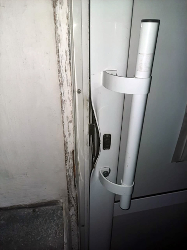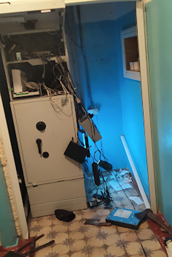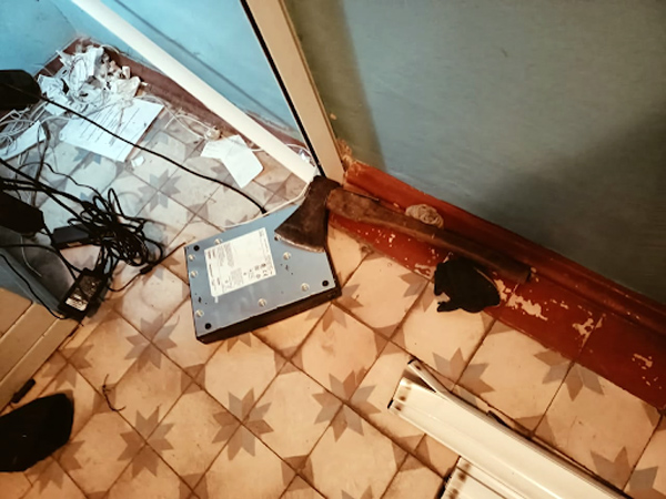 Зухвалий грабіжник пошкодив вхідні металопластикові двері, проник до приміщення Кагарлицької місцевої поліклініки та сокирою намагався дістати гроші з банкомата.