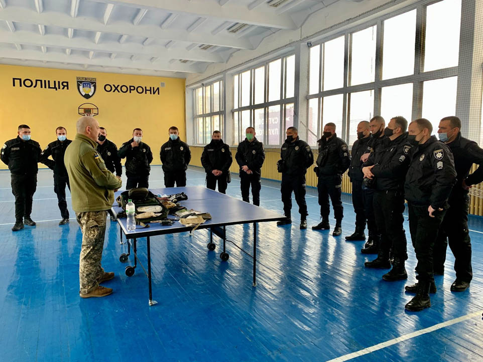 В Управлінні поліції охорони Львівщини відбулось заняття з домедичної підготовки з викладачем циклової комісії загальновійськових дисциплін капітаном медичної служби Тарасом Яницьким.