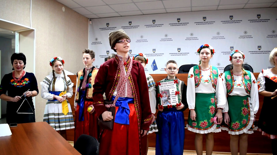 Сьогодні дівчатка та хлопчики, одягнені в українські національні костюми, заспівали українські щедрівки, розповіли вірші та щедро засіяли зерном службове приміщення задля процвітання служби та родин працівників. Їх підтримували педагоги та директор школи-інтернату Ганна Тихомирова.