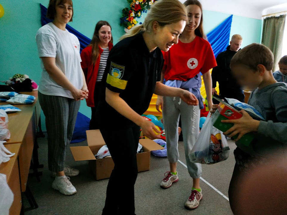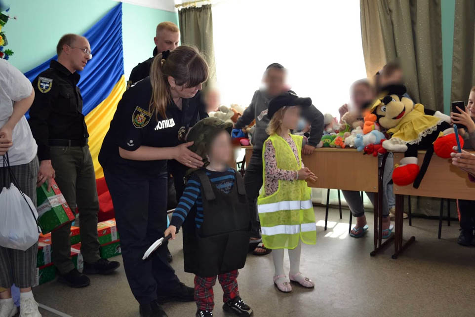 У Житомирі, в одному із компактних поселень, де мешкають внутрішньо переміщені громадяни, поліцейські поліції охорони, поліцейські ювенальної превенції, поліцейський групи реагування патрульної поліції, поліцейський капелан та волонтери Червоного Хреста України зустрілись із дітьми з «гарячих» точок України.