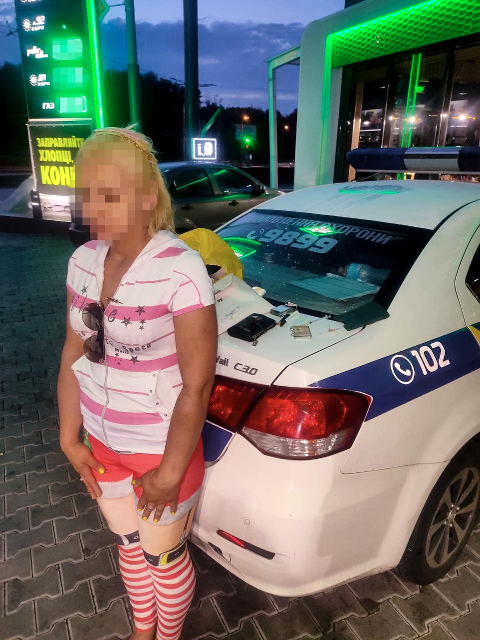 Прибувши за адресою персонал об'єкта розказав та показав поліціянтам жінку, що за їх свідченнями, регулярно відвідує санітарну кімнату для клієнтів автозаправного комплексу після чого завжди залишаються використані шприци та сліди свіжої крові. Під час поверхневого огляду у затриманої, виявлено шприци з невідомою речовиною та інші предмети, що могли підтверджувати свідчення персоналу АЗК. На місце події була викликана слідчо-оперативна група районного відділення поліції та виявлену речовину направлено на відповідну експертизу.