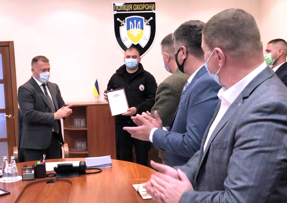 Сержанту поліції поліцейському взводу охорони об'єктів та публічної безпеки роти Управління поліції охорони в Івано-Франківській області Ігорю Павчаку за сумлінне несення служби та відвагу. Адже, перебуваючи на навчанні в столиці, правоохоронець урятував життя маленької дівчинки, яка впала в озеро. А також керівник поліції охорони привітав абсолютних переможців у Чемпіонаті з практичної стрільби на Кубок Міністра внутрішніх справ України команду Департаменту поліції охорони.