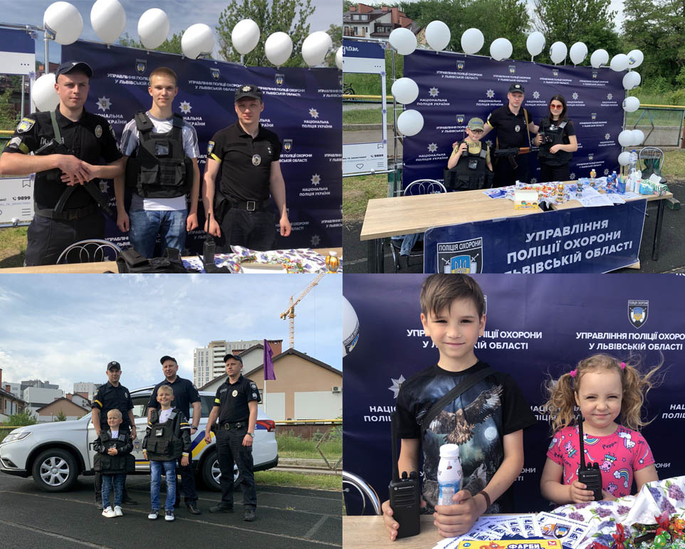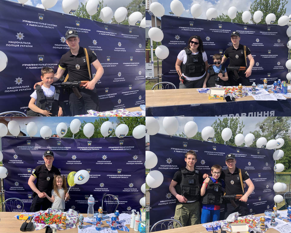 Поліцейські охорони представили транспорт, зброю та спеціальні засоби, які застосовуються у діяльності поліції охорони. Діти з цікавістю одягали екіпірування, вмикали сирену та розмовляли по гучномовцю та радіостанції,а також активно спілкувалися з поліцейськими. Захід подарував дітям та їх батькам безліч позитивних емоцій, а головне те, що малеча спробувавши себе у ролі поліцейського, чи рятувальника, зрозуміла важливість цих професій.