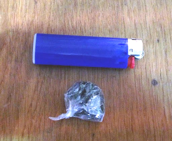 При поверхневій перевірці у кишені куртки чоловіка виявили чорний пакет всередині із зеленою речовиною рослинного походження, зовні схожою на наркотичну.
