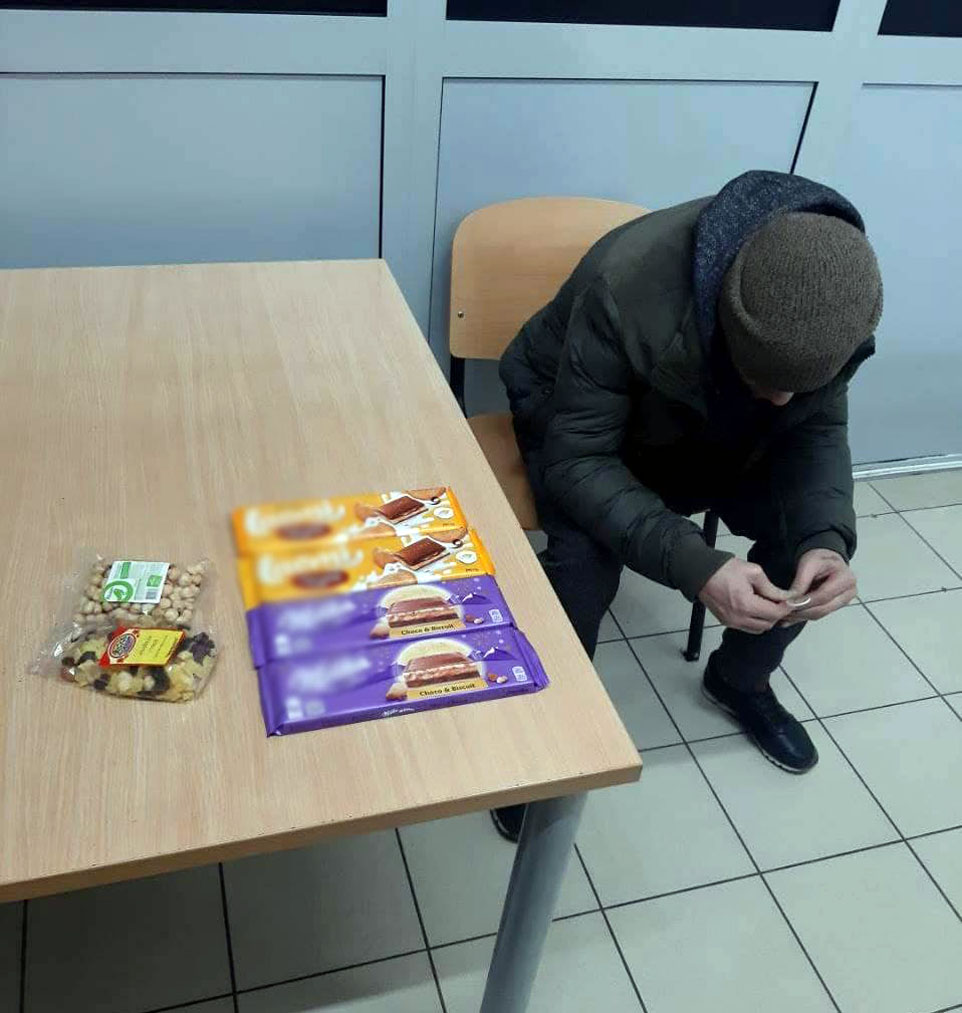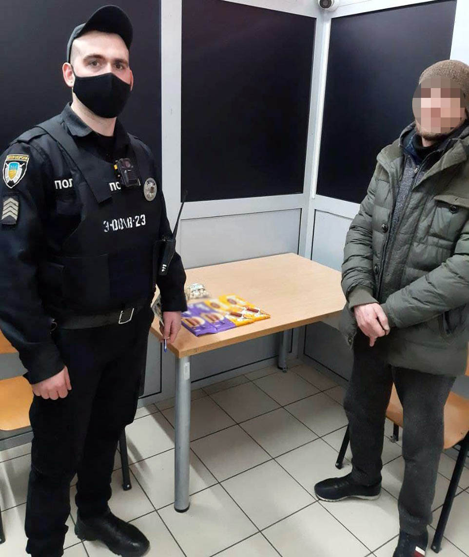 Було встановлено, що чоловік зайшов до супермаркету й, скориставшись тим, що поблизу немає інших покупців, непомітно заховав до внутрішніх кишень куртки 4 плитки шоколаду, пачку горішків та чайну суміш. Пройшовши касову зону, зловмисник направився до виходу, однак його зупинив поліцейський охорони, якому вже повідомили про підозрілого покупця.