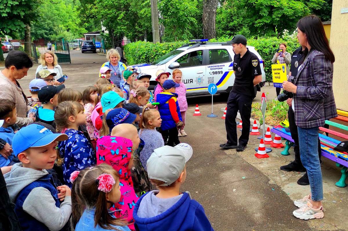 Поліцейські для дітей провели цікаву пізнавальну бесіду. Інспектор ювенальної превенції Дмитро Дмитрюк розповів про безпеку дорожнього руху та правила поведінки під час літніх канікул: