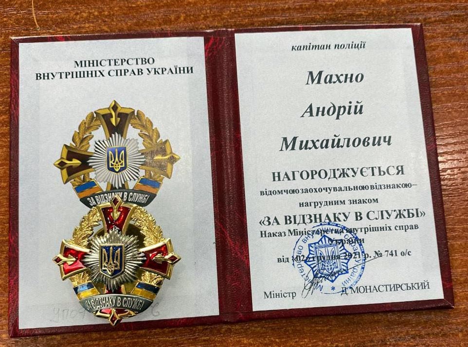 Окрім цього, на нараді наказом Міністра внутрішніх справ України від 02.12.2021 року № 741 о/с, за ініціативу та наполегливість в досягненні високих результатів в турнірі з практичної стрільби на кубок Міністра внутрішніх справ України, професіоналізм та волю до перемоги, нагородили нагрудним знаком «За відзнаку в службі» інспектора роти №2 капітана поліції Андрія Махна,. Андрій Махно неодноразово брав участь та здобував перемоги у змаганнях Національної поліції України та Міністерства внутрішніх справ України.