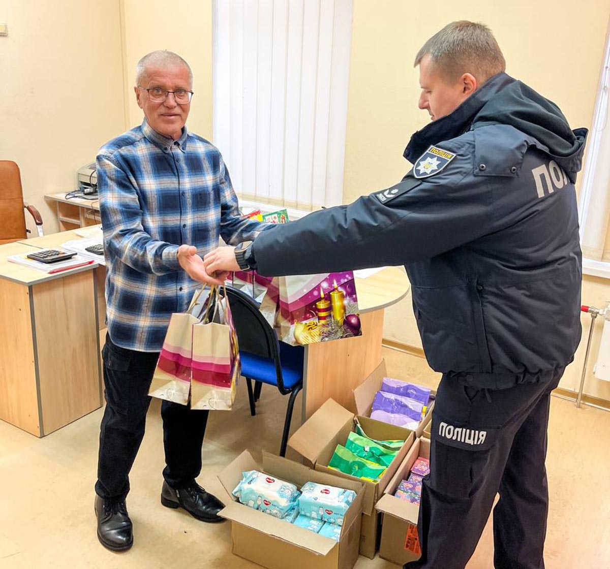 Співробітники Управління поліції охорони з фізичної безпеки в м. Києві до Дня Святого Миколая завітали до Київського міського будинку дитини «Берізка», щоб передати подарункові набори, а також необхідні діткам засоби гігієни.