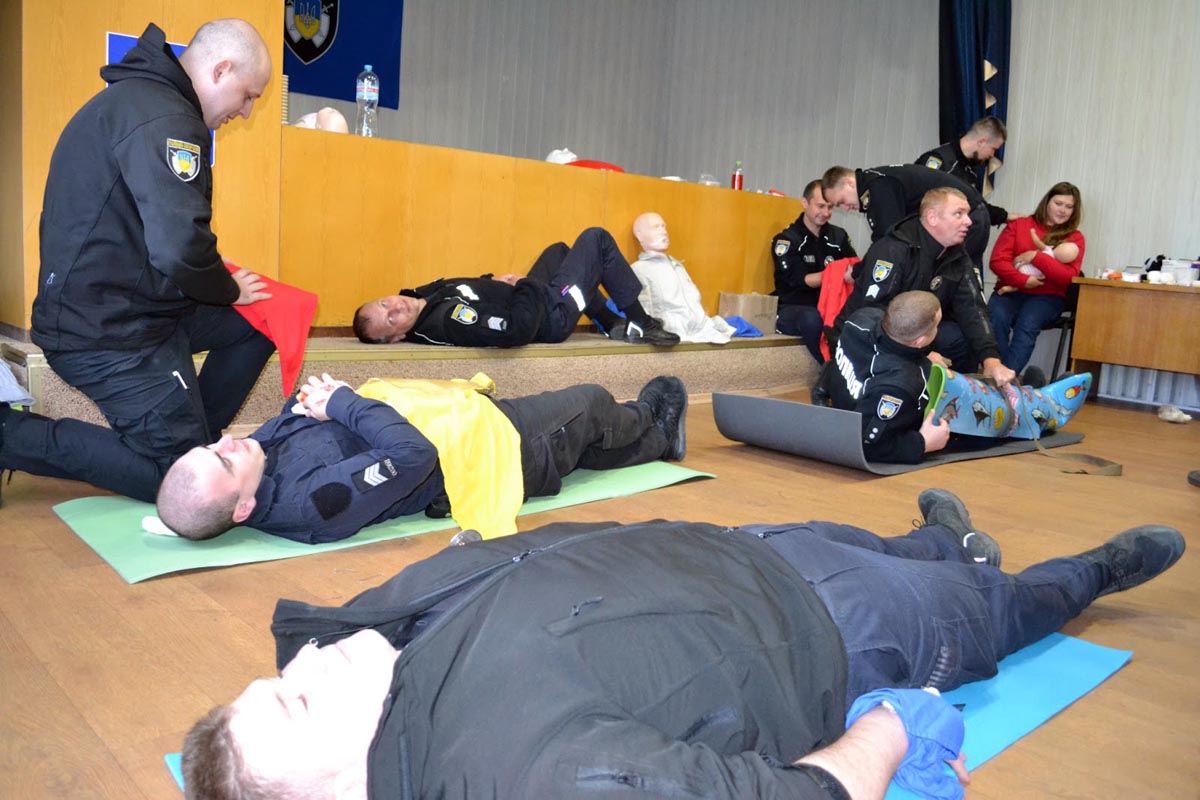 Заняття з надання першої медичної допомоги нещодавно були проведені для 20 працівників поліції охорони. Впродовж шестигодинного тренінгу правоохоронці підвищували рівень знань у проведенні серцево-легеневої реанімації, в тому числі дітей, практикувалися зупиняти кровотечу, допомагати при різних травмах, потраплянні сторонніх предметів у дихальні шляхи та інших невідкладних станах. Тренування відбувалися з використанням спеціальних засобів та манекенів.