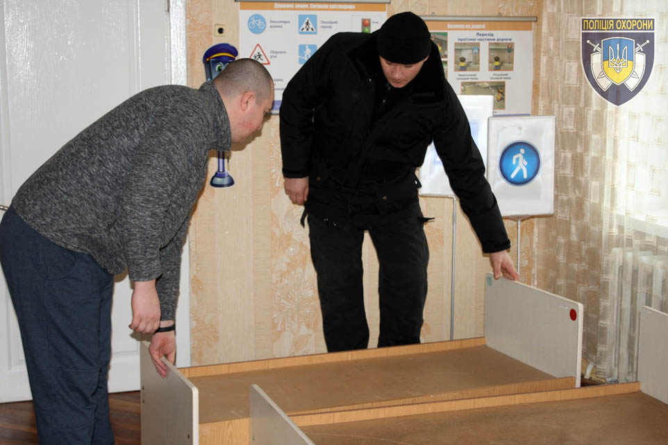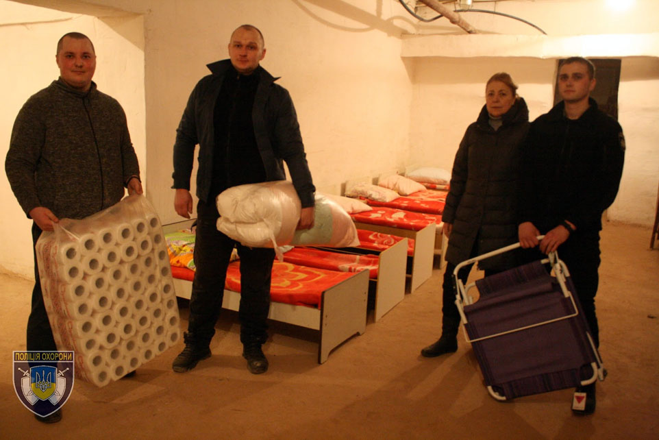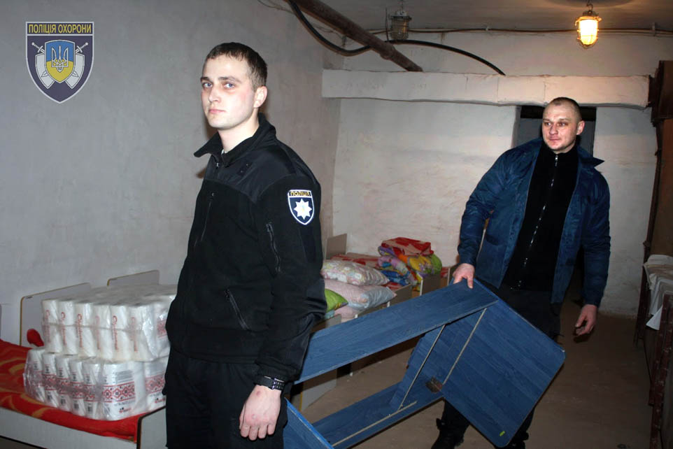 Цього разу адміністрація ДЗО звернулась в Управління поліції охорони в Рівненській області з проханням допомоги в облаштуванні бомбосховища у підвалі будівлі садочка. Правоохоронці не вагаючись погодилися допомогти і в запланований час були в обумовленому місці. Завдання стояло чітке: перенести на нульовий поверх меблі (ліжка, шафи, лави) та розставити їх згідно запланованої схеми. Кілька годин фізичної праці і завдання було виконано.