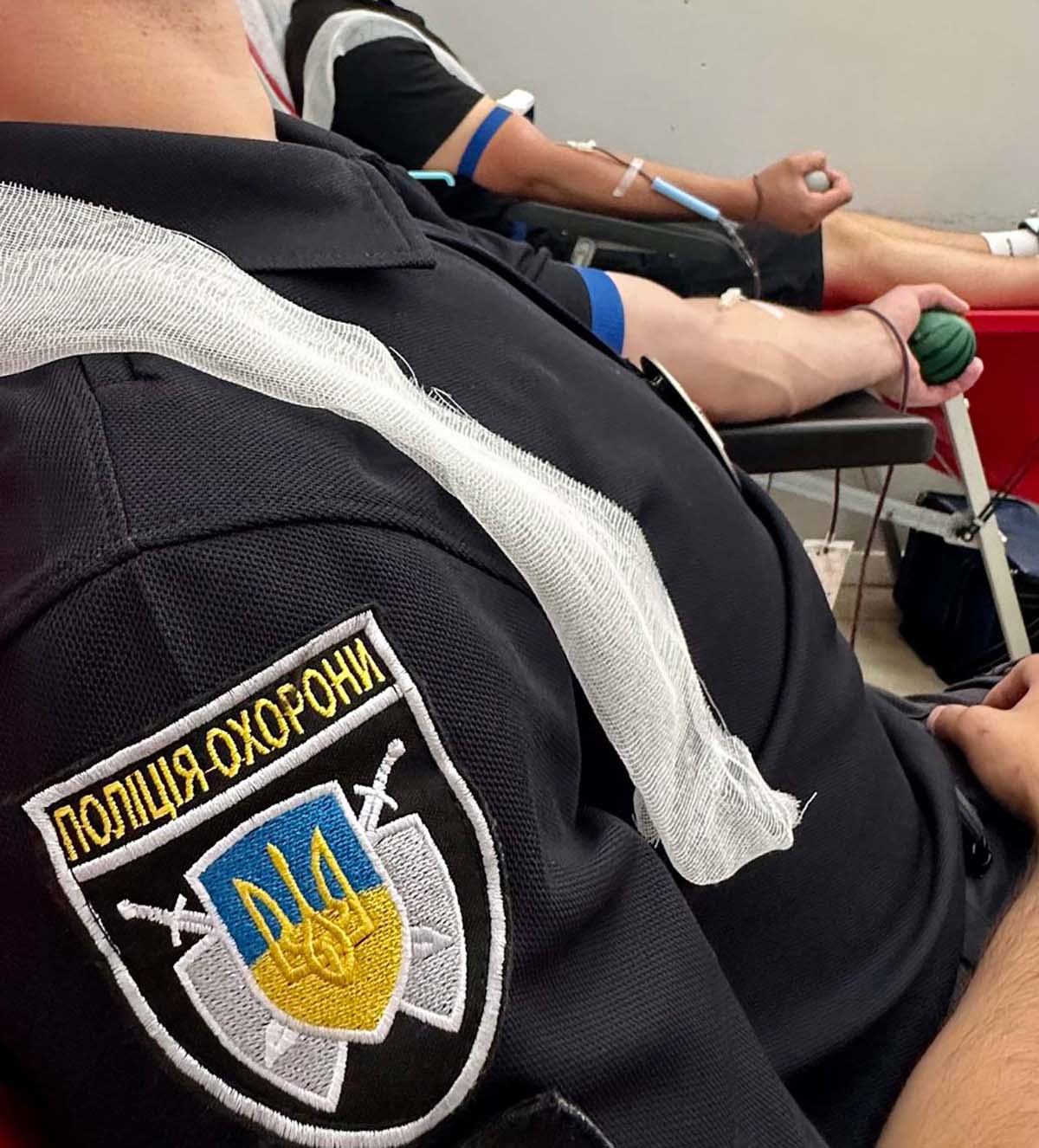 Працівники поліції охорони разом з «Батальйоном Софіївський» Добровольчого формування Борщагівської сільської територіальної громади № 1 «Петропавлівський» долучились до ініціативи Київської міської клінічної лікарні №18 по здачі крові для бійців ЗСУ.