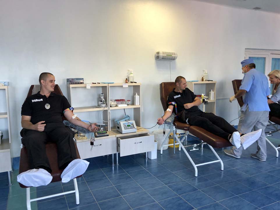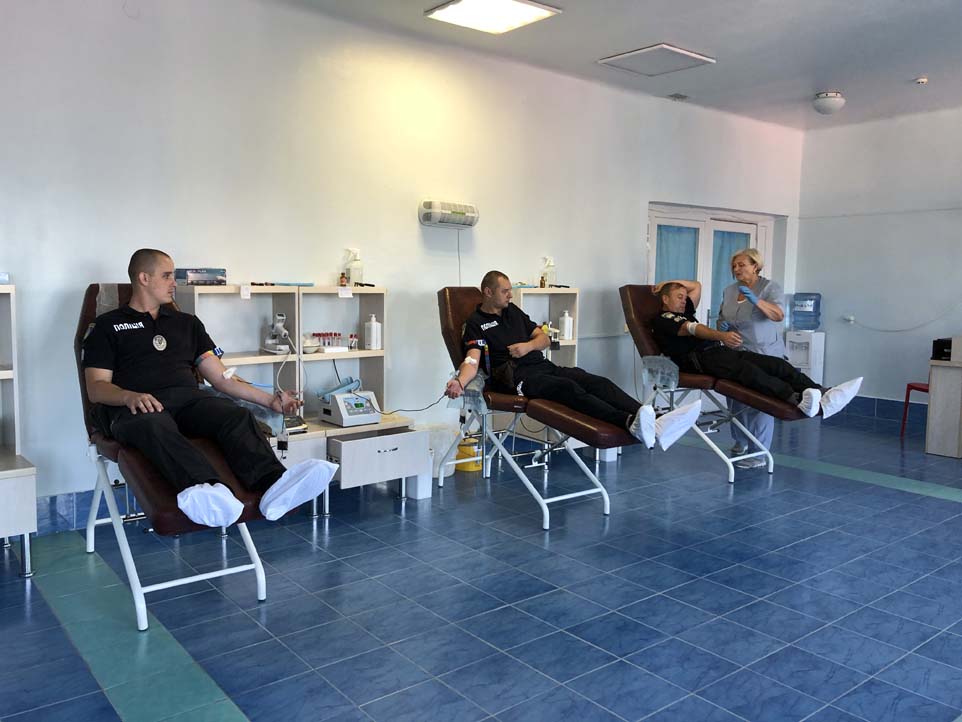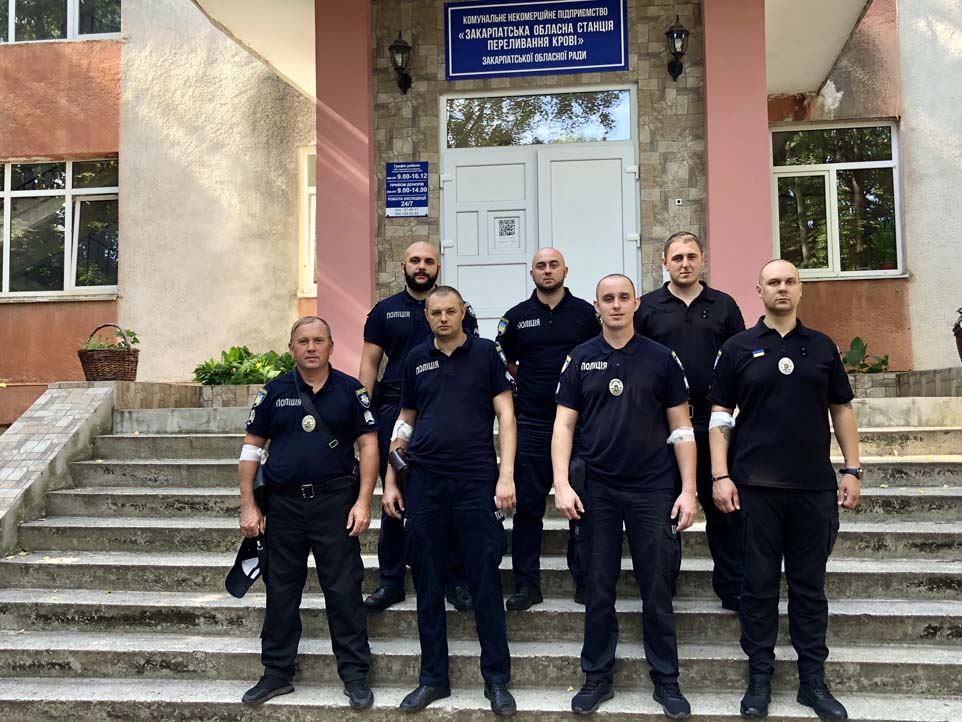 Сьогодні правоохоронці поліції охорони Закарпаття знову здають кров. Цього разу для пацієнтів медзакладів області.