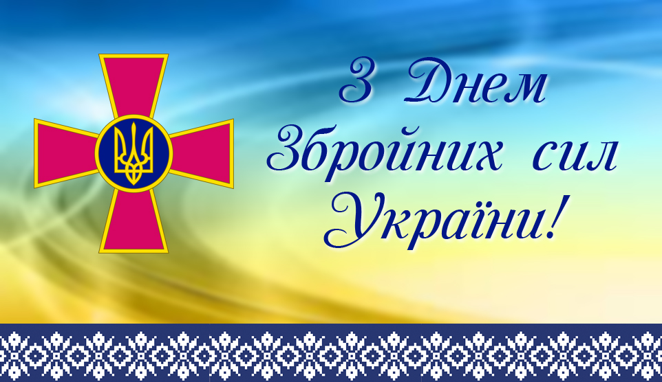 Шановні військовослужбовці, працівники Збройних Сил України! Дорогі ветерани! Щиро вітаю вас зі святом — Днем Збройних Сил України! Країна пишається українськими військовими, самовідданними, сміливими і...