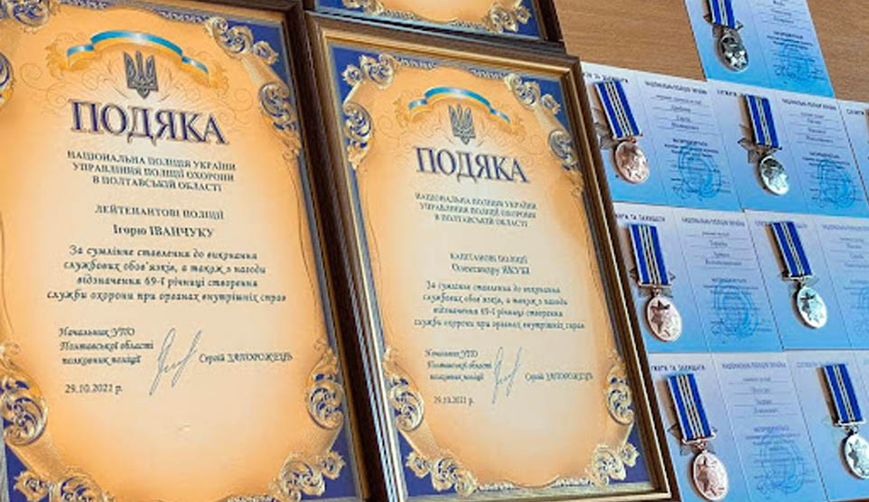 З нагоди 69-ї річниці створення Служби охорони, співробітники Управління поліції охорони в Полтавській області отримали подяки та відомчі заохочувальні відзнаки Національної поліції України - «10, 15 та 20...